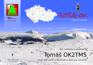 - pro lovce, s body získanými pouze za QSO s OK vrcholy